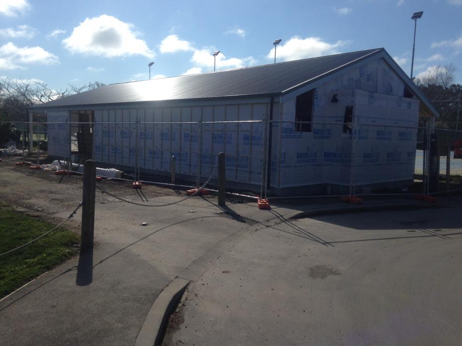 While the rebuild was in progress, we were fortunate to be able to use the Richmond Cricket Club building as a temporary Clubrooms through the winter, and then for the last two months, a Portacom was used.